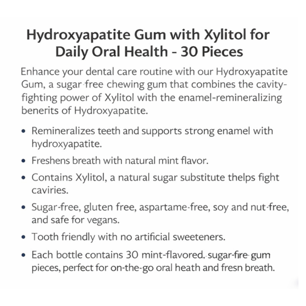 Hydroxyapatite Gum – Sugar Free Xylitol Chewing Gum, Mint Flavor, Enamel Support, Fresh Breath, Vegan & Gluten Free – 30 Pieces